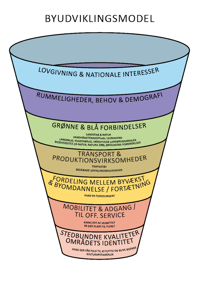 For at kvalificere de arealer, der er plads til i kommuneplanen, screenes de gennem byudviklingsmodellen for at få et så godt udgangspunkt for planlægningen som muligt.